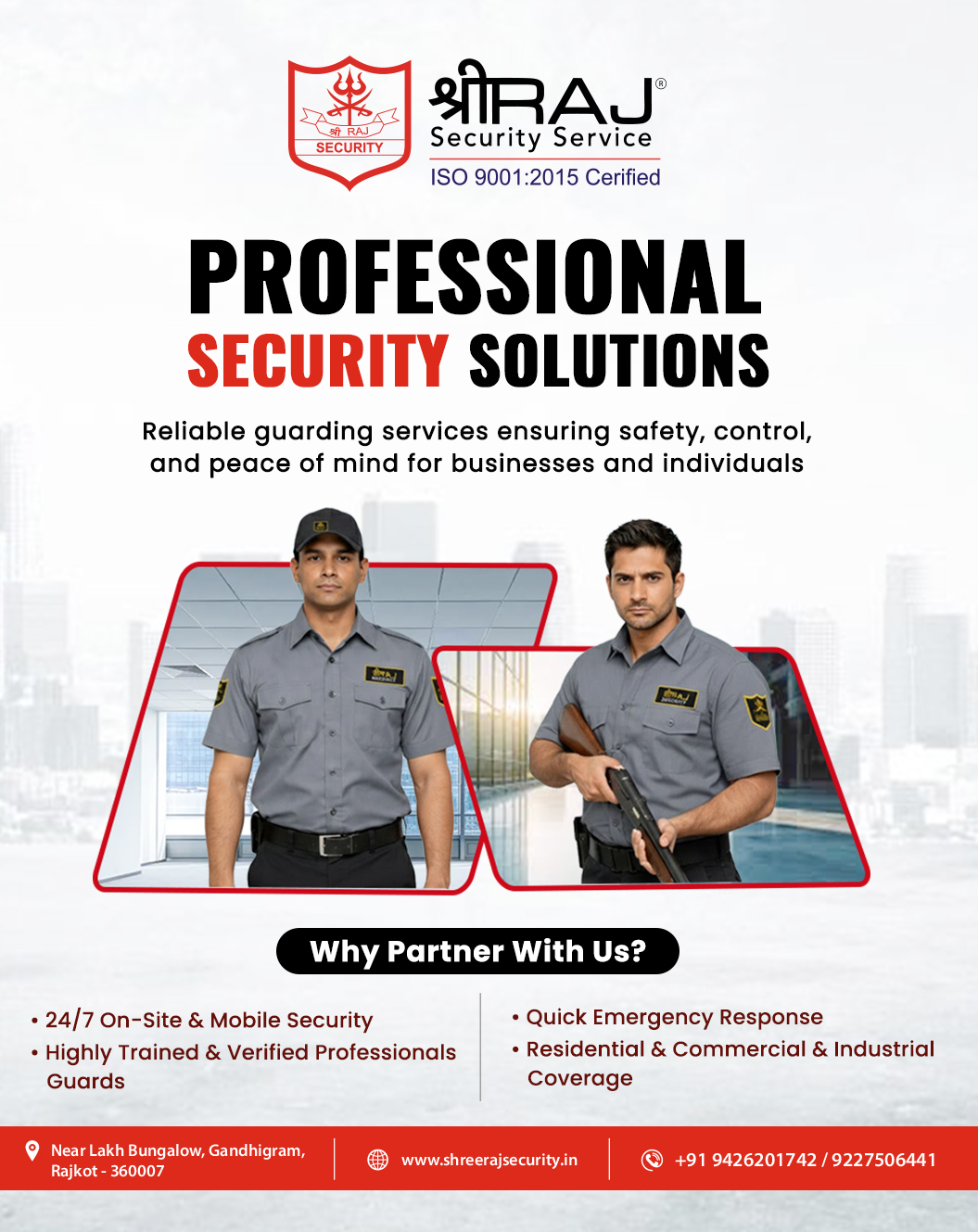 Professional security guards delivering strong protection, strict vigilance, and complete peace of m...Professional security guards delivering strong protection, strict vigilance, and complete peace of mind—24x7, everywhere 🛡 security | security guards | protection | vigilance | trust 📍 Rajkot | ISO 9001:2015 Certified 📞 9426201742 , 9227506441